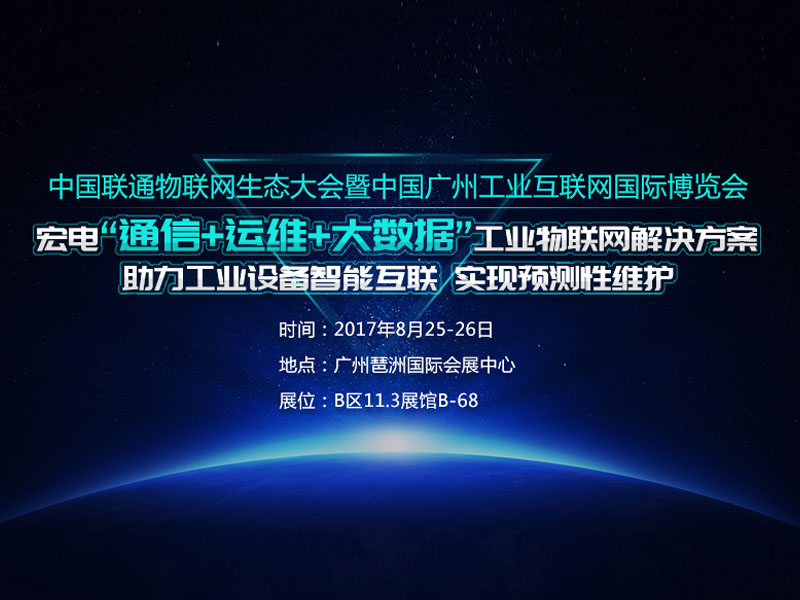 8月25-26日廣州廣交會展館,宏電將展示“通信+運(yùn)維+大數(shù)據(jù)”工業(yè)物聯(lián)網(wǎng)解決方案,助力工業(yè)設(shè)備智慧互聯(lián)。