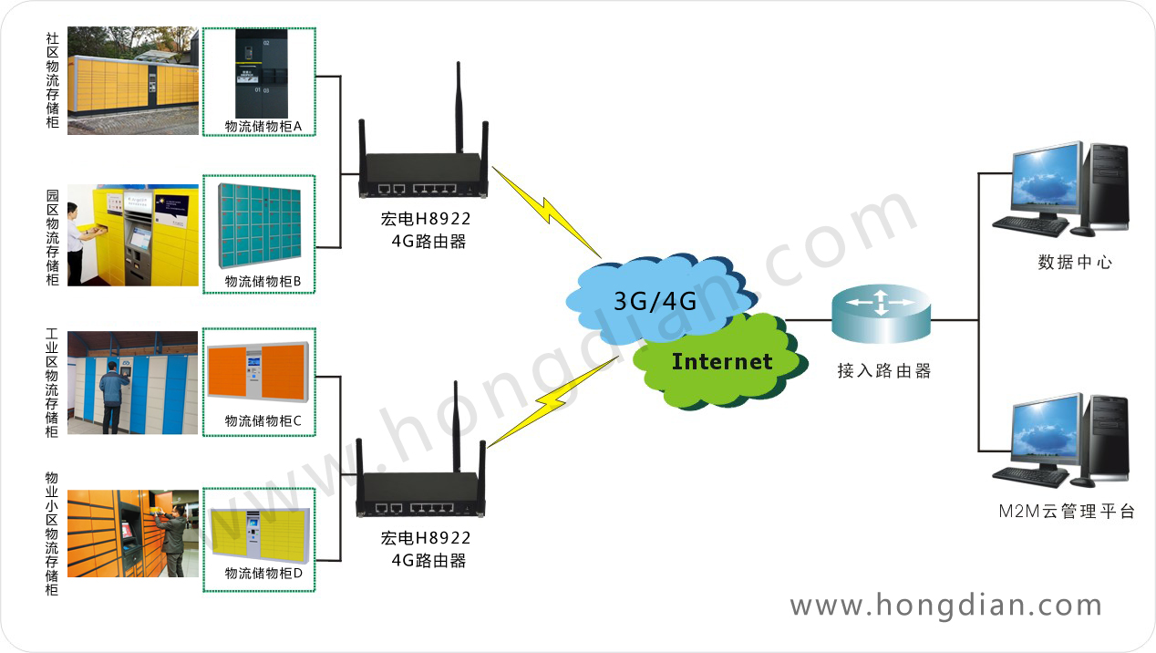 宏電自助快遞柜無線聯(lián)網(wǎng)系統(tǒng)拓?fù)鋱D