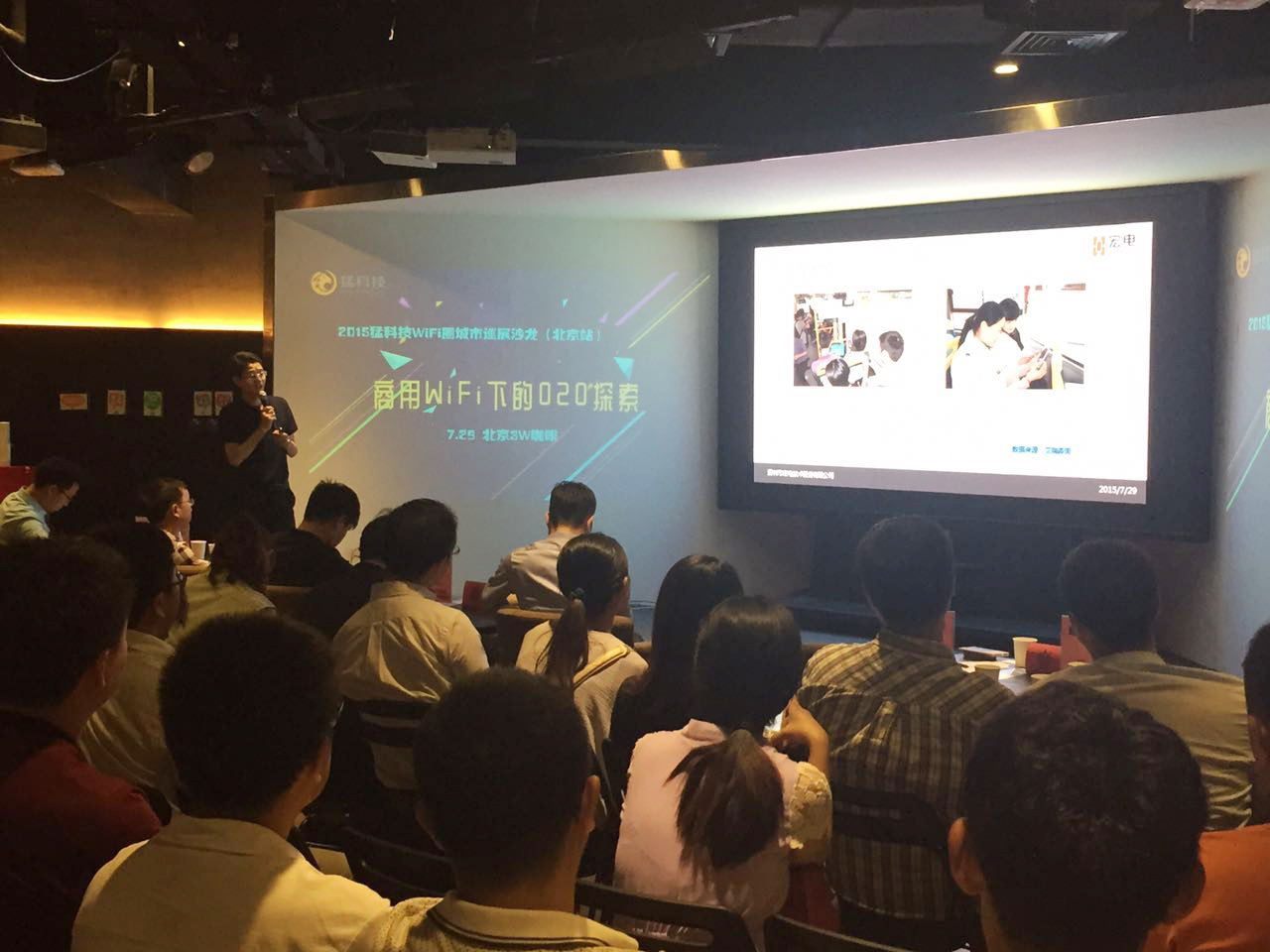 7月29日下午兩點(diǎn),2015猛科技WiFi圈城市巡展沙龍(北京站)在北京3W咖啡館成功舉辦,本次會(huì)議主題為“商用WiFi下的O2O探討”,吸引了200多名來自商用WiFi領(lǐng)域的設(shè)備商、運(yùn)營商、投資商和專業(yè)人士參與。活動(dòng)主辦方邀請(qǐng)了圈內(nèi)諸如京東電商云、宏電股份、萬商維盟、極路由、百度WiFi聯(lián)盟等商業(yè)WiFi領(lǐng)域上下游具有代表型的企業(yè)高管作為演講分享嘉賓。