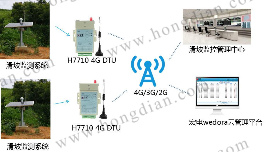 針對(duì)廣西山地滑坡地質(zhì)災(zāi)害頻繁的情況宏電進(jìn)行深入的調(diào)研與分析,由于山體滑坡時(shí)間的不確定性,滑坡過程短暫且迅速等原因,且山體滑坡中采集數(shù)據(jù)難度較大,如果能對(duì)不同坡面滑坡時(shí)收集到的數(shù)據(jù)進(jìn)行實(shí)時(shí)分析處理,可對(duì)日后的準(zhǔn)確預(yù)報(bào)提供科學(xué)依據(jù),對(duì)此宏電提出山體滑坡在線監(jiān)測解決方案,項(xiàng)目采用宏電H7710 4G DTU,通過DTU RS232串口與采集設(shè)備連接,以移動(dòng)4G網(wǎng)絡(luò)作為承載網(wǎng)絡(luò)保障采集山體滑坡、位移等數(shù)據(jù)上報(bào)到監(jiān)控后臺(tái),為山體滑坡管理中心提供實(shí)時(shí)的監(jiān)測數(shù)據(jù)支持。