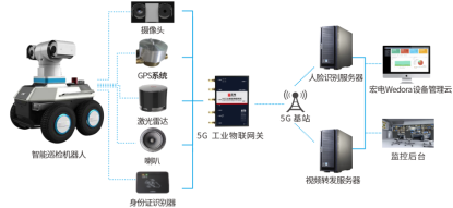 隨著AI技術(shù)日漸成熟和傳感器技術(shù)的精度提高,智能巡檢機器人的運用得以實施,變電站機器人巡檢等電力生產(chǎn)管理中的中低速率移動場景逐漸增多。通過在巡檢機器人上裝設(shè)宏電5G智能物聯(lián)網(wǎng)關(guān),將機器人采集到的圖像和視頻以及傳感器采集到的數(shù)據(jù)通過5G鏈路回傳,可以實現(xiàn)視頻流的實時傳輸,將高清的視頻實時展現(xiàn)在控制中心監(jiān)控大屏上,并且可以實現(xiàn)遠程穩(wěn)定可靠的控制,極大的提高了數(shù)據(jù)傳輸效率和控制性能。