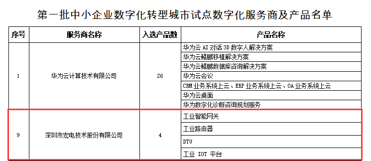 2024年4月,深圳市中小企業(yè)服務(wù)局公布了第一批中小企業(yè)數(shù)字化轉(zhuǎn)型城市試點(diǎn)數(shù)字化服務(wù)商及產(chǎn)品名單,本次遴選出43家數(shù)字化服務(wù)商,深圳市宏電技術(shù)股份有限公司入選服務(wù)商名單。