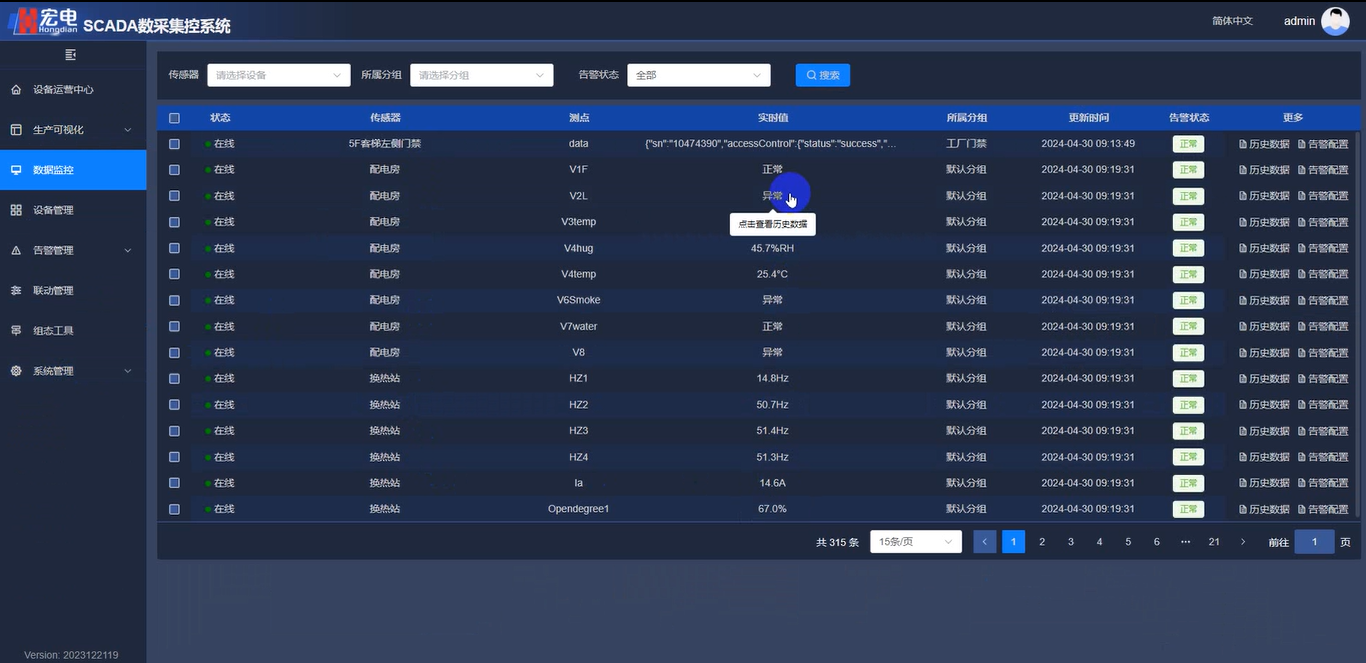 宏電SCADA數(shù)采集控系統(tǒng)能夠?qū)墓I(yè)設(shè)備中獲取的數(shù)據(jù)進行存儲,方便后續(xù)分析和研究,也可以對操作員進行記錄,以便后續(xù)審計和追溯;支持采用不同級別、不同業(yè)務(wù)需求的數(shù)據(jù)存儲方式,包括實時存儲、歷史存儲和歸檔存儲。還可以根據(jù)實時數(shù)據(jù)采集和分析的結(jié)果,生成各種報表和文檔。并將報表展示在人機界面、監(jiān)控中心、PC端、移動端等多種設(shè)備上。