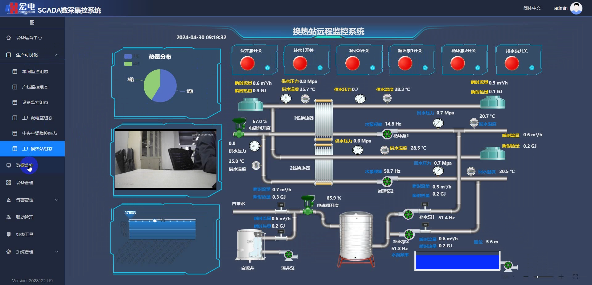 可視化主要通過宏電SCADA組態(tài)工具提供各種儀表盤、圖表等可視化界面,實時顯示各種參數(shù)和數(shù)據(jù),同時提供趨勢分析、統(tǒng)計分析、歷史數(shù)據(jù)記錄等功能,以便實現(xiàn)對工藝過程的可視化管理和優(yōu)化。