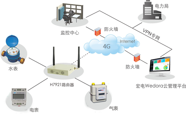 宏電無線路由器主要是通過4G網(wǎng)絡(luò)等運(yùn)營商網(wǎng)絡(luò)來傳輸RTU采集到的數(shù)據(jù),方便平臺(tái)實(shí)時(shí)對(duì)現(xiàn)場(chǎng)運(yùn)行數(shù)據(jù)情況進(jìn)行查看;
