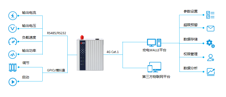 支持多種協(xié)議,對(duì)接各類(lèi)物聯(lián)網(wǎng)平臺(tái),實(shí)現(xiàn)遠(yuǎn)程控制、數(shù)據(jù)存儲(chǔ)、設(shè)備地圖、歷史數(shù)據(jù)分析、定時(shí)任務(wù)、報(bào)警功能、權(quán)限管理等功能。