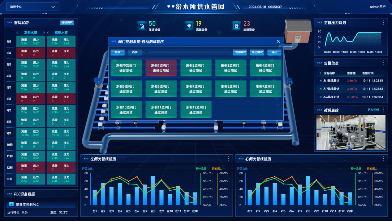 依據(jù)管網(wǎng)布局1:1構(gòu)建3D炫酷孿生大屏,將管網(wǎng)中各類閥門、儀表等不可見的數(shù)據(jù)直觀可視化。