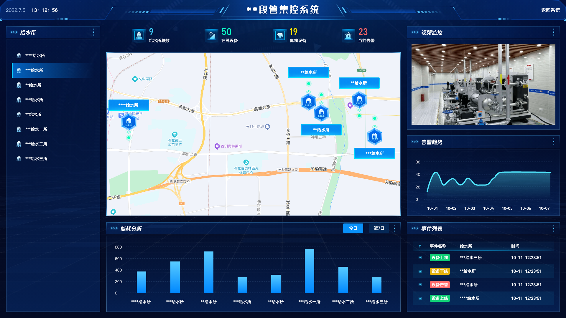 宏觀掌握房產(chǎn)段所轄給水所數(shù)量、在線與離線情況、告警趨勢(shì)、實(shí)時(shí)事件等,實(shí)現(xiàn)透明化的二級(jí)監(jiān)管。