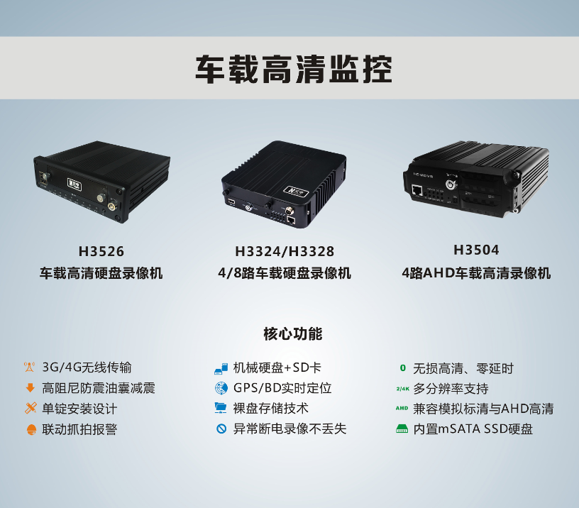 H3318A具備的車載視頻監(jiān)控功能,能夠?qū)④囆旭傔^(guò)程中的錄像高清無(wú)損的記錄下來(lái),同時(shí)還能支持定時(shí)/手動(dòng)抓拍、事件/聯(lián)動(dòng)報(bào)警、疲勞駕駛報(bào)警、偏離路線報(bào)警等功能。