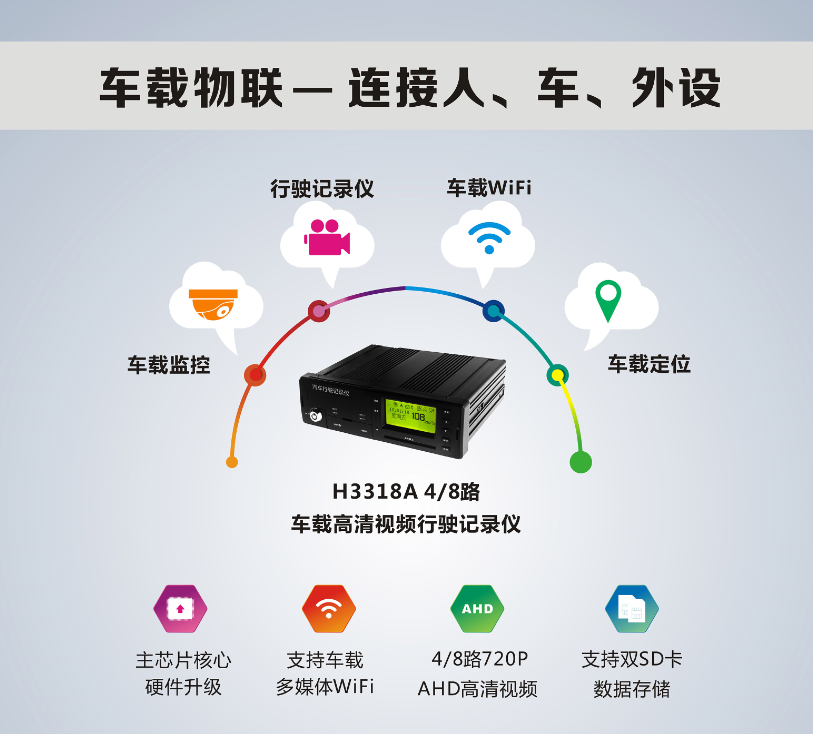 H3318A還內(nèi)置車載WiFi模塊,可提供免費(fèi)WiFi上網(wǎng)服務(wù)以及本地存儲(chǔ)的豐富的視頻、音樂(lè)、游戲等,在實(shí)現(xiàn)安全監(jiān)控外,更多了途中享受,實(shí)現(xiàn)了人與車的互聯(lián)。
