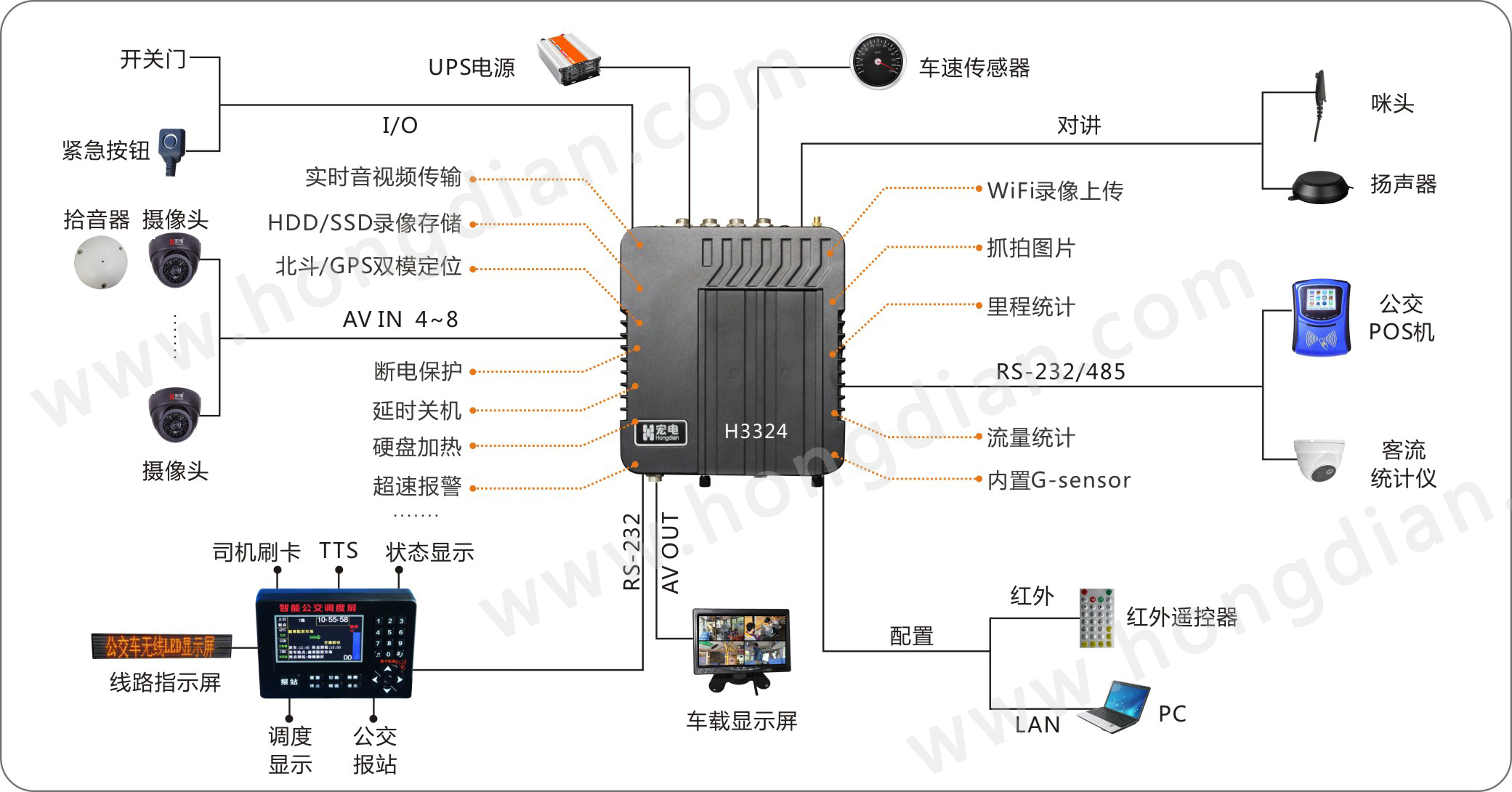 在互聯(lián)網(wǎng)+思想的指導下,深圳宏電推出城市公交車輛無線監(jiān)控調(diào)系統(tǒng)。該系統(tǒng)能夠?qū)卉囕v進行實時視頻監(jiān)控,實現(xiàn)公交調(diào)度、數(shù)據(jù)采集,為交通事故和違法事件取證提供有效依據(jù),規(guī)范公交運輸管理。