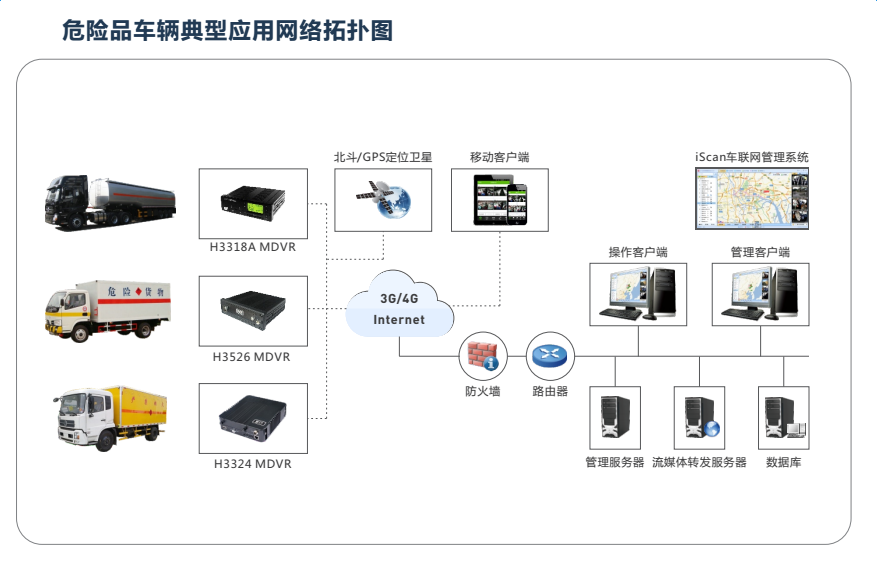 根據(jù)客戶的需求,宏電為其量身打造了軟硬件結(jié)合的危險品車輛管理方案,依托宏電H3318A車載視頻行駛記錄儀和iScan車聯(lián)網(wǎng)管理平臺,實現(xiàn)對油罐車的全方位無盲區(qū)監(jiān)管。