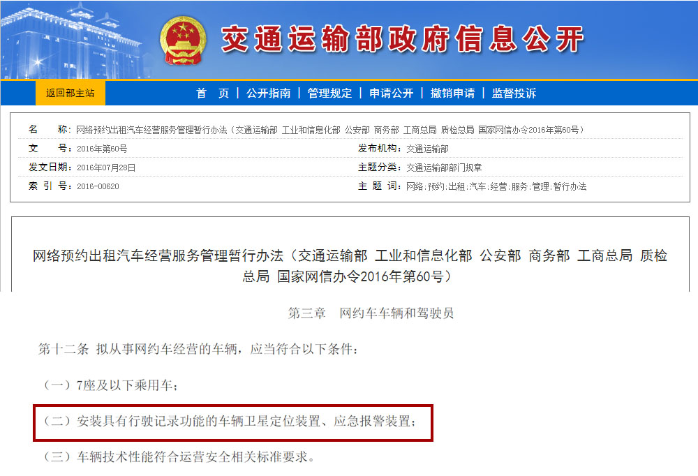 根據(jù)《網(wǎng)絡(luò)預約出租汽車經(jīng)營服務管理暫行辦法》規(guī)定,網(wǎng)約車必須要安裝有行駛記錄功能的車輛衛(wèi)星定位裝置、應急報警裝置。但從近期發(fā)生的一系列網(wǎng)約車惡性事件來看,這對網(wǎng)約車的安全保障還是有限的。因此有多家媒體建議,網(wǎng)約車應效仿出租車安裝視頻監(jiān)控系統(tǒng),全面保障乘客生命財產(chǎn)安全。