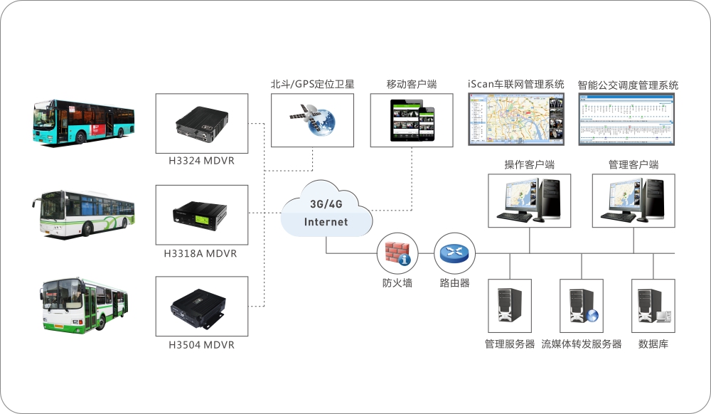 系統(tǒng)能對車輛運營狀態(tài)進行實時監(jiān)控,以及車輛工作狀態(tài)監(jiān)控、車內(nèi)視頻監(jiān)控、司機駕駛行為監(jiān)控、基于電子圍欄的實時異動監(jiān)控等。