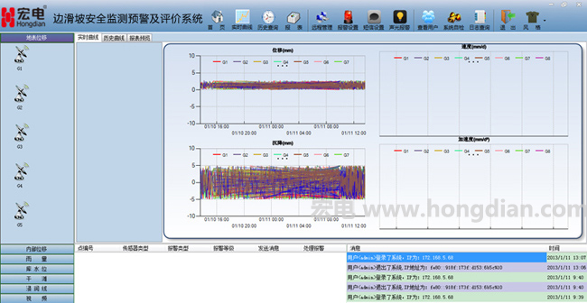 宏電邊滑坡安全監(jiān)測(cè)預(yù)警系統(tǒng)由數(shù)據(jù)采集監(jiān)測(cè)子系統(tǒng)、專(zhuān)家分析及預(yù)測(cè)預(yù)報(bào)子系統(tǒng)、風(fēng)險(xiǎn)分析評(píng)價(jià)子系統(tǒng)、專(zhuān)家在線診治系統(tǒng)及預(yù)警預(yù)報(bào)模塊等組成,可實(shí)現(xiàn)全天候不間斷的實(shí)時(shí)在線監(jiān)測(cè)。