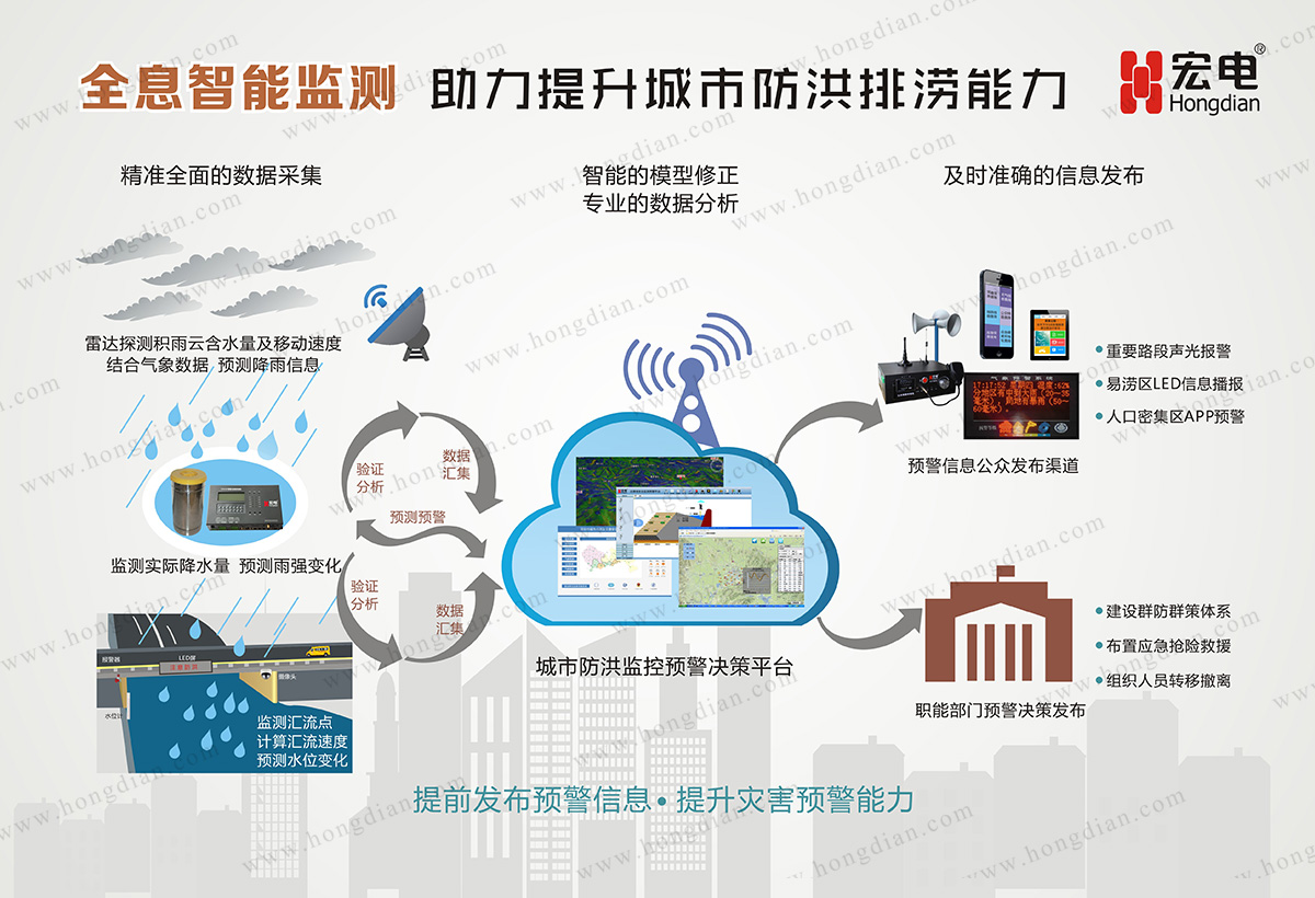 實(shí)踐中,深圳宏電正踐行著這樣的理念,推出了城市內(nèi)澇積水監(jiān)測(cè)系統(tǒng),該系統(tǒng)整合空間信息、土地利用信息、管網(wǎng)信息和實(shí)時(shí)監(jiān)測(cè)的水位、雨量、水質(zhì)、流量等信息,通過(guò)精準(zhǔn)全面的數(shù)據(jù)采集,智能的模型修正,專業(yè)的數(shù)據(jù)分析,及時(shí)準(zhǔn)確的信息發(fā)布,實(shí)現(xiàn)城市內(nèi)澇積水情況的監(jiān)測(cè)和預(yù)報(bào),為管理部門提前發(fā)布預(yù)警提供支持,助力海綿城市的建設(shè)。