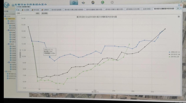 在黃委,我們了解到:1972年至1999年,28年間,黃河下游干流斷流22年,斷流長度一度達700多公里。最嚴重的1997年,一年365天中,斷流長達226天!直至2003年上半年,黃河來水仍屬偏枯。此外,2002年,小浪底水利樞紐開始調(diào)水調(diào)沙,多年來已將下游河道主槽河底高程平均刷深兩米!這些,都在山東黃河水文信息綜合平臺留下了印跡。