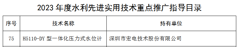 日前,水利部科技推廣中心公布了《2023年水利先進實用技術(shù)重點推廣指導目錄》,共239項水利先進實用技術(shù)入選,宏電股份自主研發(fā)的智能感知監(jiān)測產(chǎn)品H5110-DY一體化壓力式水位計憑借“科學的技術(shù)原理、先進有效的技術(shù)性能指標、合理的成本價格和良好的應用效益”等優(yōu)勢位列其中。