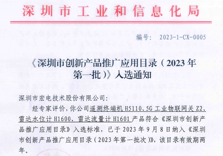 近日,深圳市工業(yè)和信息化局公布《深圳市創(chuàng)新產品推廣應用目錄(2023年第一批)》,宏電股份申報的多款智能感知監(jiān)測產品、Z2 5G工業(yè)物聯(lián)網(wǎng)關憑借突出的科技創(chuàng)新能力和領先的技術指標等綜合優(yōu)勢成功入選,并成為政府機構采購推薦產品。