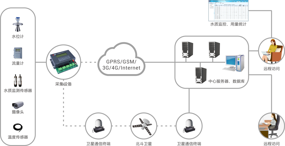 宏電水資源實(shí)時(shí)監(jiān)測(cè)管理系統(tǒng)可應(yīng)用于對(duì)水質(zhì)、水量等信息的實(shí)時(shí)監(jiān)測(cè),并在監(jiān)測(cè)的基礎(chǔ)上,以大量的綜合信息為基礎(chǔ),采用現(xiàn)代水資源管理數(shù)學(xué)模型,為水資源的實(shí)時(shí)配置、調(diào)度提供決策支持。針對(duì)不同流域、不同地區(qū)不同的經(jīng)濟(jì)發(fā)展水平及基礎(chǔ)設(shè)施狀況,因地制宜地配置監(jiān)測(cè)管理系統(tǒng)。