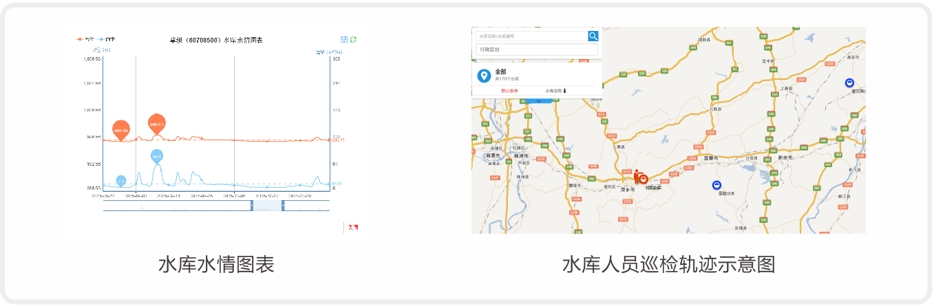 提供了實(shí)時(shí)巡查表格監(jiān)視、地圖監(jiān)視、巡查提醒、軌跡回放、績(jī)效統(tǒng)計(jì)分析等功能,巡檢的重點(diǎn)為大壩上游水面附近、上下游壩面、壩腳、涵洞進(jìn)出口部位、溢洪道兩側(cè)巖體、監(jiān)測(cè)系統(tǒng)及病險(xiǎn)水庫的隱患部位。