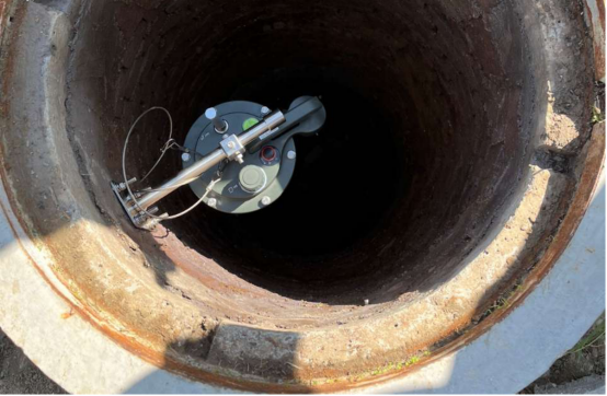 6、安裝簡單:只需將專用支架固定到窨井井口,設(shè)備懸掛到支架上,雷達傳感器調(diào)至窨井中央位置。需要確保雷達傳感器置于水位上方,且雷達傳感器正下方無雜物遮擋或橫穿過水管道的流水干擾,即可完成安裝。