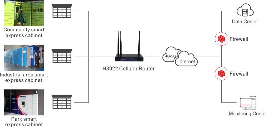 With 4G/5G industrial-grade router and M2M cloud management platform, Hongdian provides one-stop solutions for intelligent express boxes for industrial customers, completely solving the "last kilometer" wireless networking and remote terminal management problems of logistics. Intelligent express box system consists of logistics delivery box, 4G/5G router and M2M cloud management platform of three parts. Among them, logistics delivery box including read-write controller, electronic lock, and storage cabinet, people can use the password provided by the courier company at any time to takeout the parcel from the box. People can also send the parcel waiting for the salesman to take away to express box. Hongdian 4G/5G router provides self-help express cabinet wireless networking management system to establish a high speed, stable network and data transmission channel. All information is for enterprises to analyze business and operations transmit to companies’ backstage. The operating enterprise through the M2M cloud management platform achieve delivery box terminal of scattered in different locations to run the unified state regulation and effectively reduce the operational cost of the enterprise.