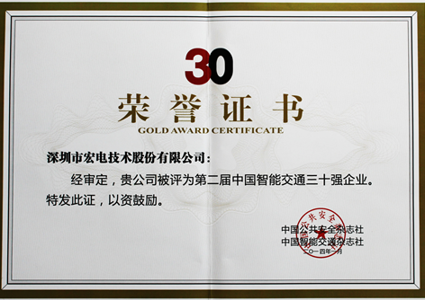 深圳宏電憑借在智能交通車載監(jiān)控與車輛安全管理領(lǐng)域的良好品牌形象和企業(yè)實力斬獲此項行業(yè)殊榮,獲得中國智能交通三十強企業(yè)稱號。