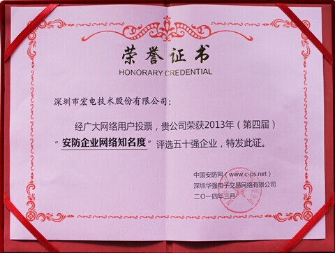 深圳宏電憑借2013年在智能交通車載監(jiān)控與車輛安全管理領(lǐng)域的市場成就與品牌影響力獲得廣大網(wǎng)民公投大力支持,榮獲2013年“安防企業(yè)網(wǎng)絡知名度五十強”殊榮。