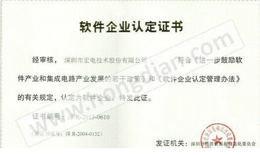 深圳宏電順利通過(guò)了審查獲得工信部軟件企業(yè)重新認(rèn)定,獲得新版軟件企業(yè)認(rèn)定證書。