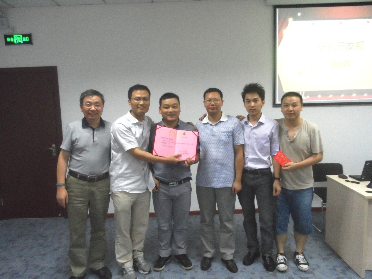 左紹舟董事長(zhǎng)為“優(yōu)秀團(tuán)隊(duì)”獲得者——研究開(kāi)發(fā)部測(cè)試部頒獎(jiǎng)