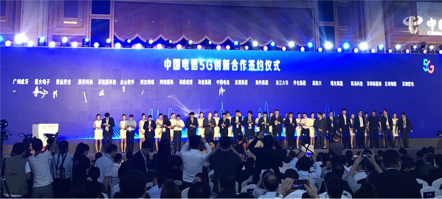4月26日,由中國(guó)電信主辦的“中國(guó)電信5G創(chuàng)新合作大會(huì)”在深圳成功舉行,大會(huì)以“Hello5G,賦能未來”為主題,廣東省委副書記王偉中 、深圳市政府市長(zhǎng)陳如桂出席此次大會(huì),大會(huì)中電信和華為、諾基亞、新華三、科大訊飛、 百度、 阿里、 騰訊、京東、商湯、日海物聯(lián)、宏電股份在內(nèi)的各大領(lǐng)域代表企業(yè)聯(lián)合發(fā)布5G創(chuàng)新業(yè)務(wù)及示范應(yīng)用并現(xiàn)場(chǎng)進(jìn)行5G創(chuàng)新應(yīng)用合作伙伴簽約。