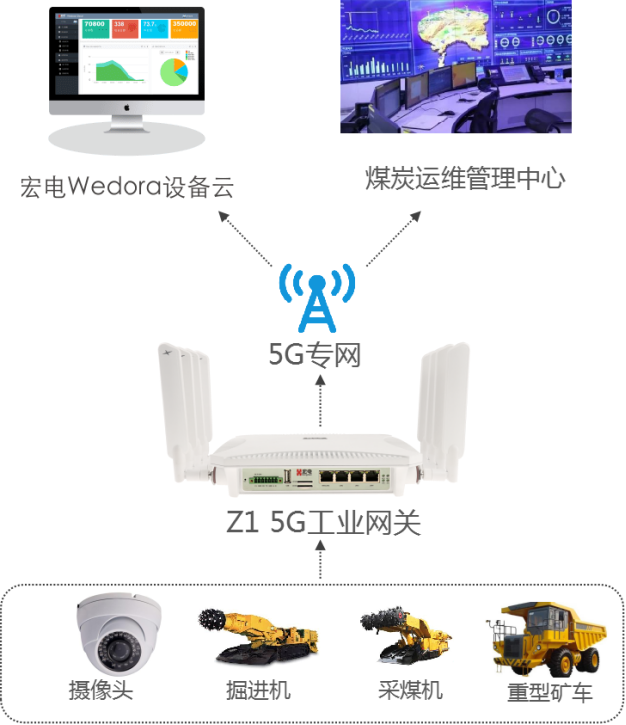 煤礦行業(yè)作為傳統(tǒng)能源行業(yè)具有環(huán)節(jié)多、戰(zhàn)線長、生產(chǎn)系統(tǒng)復(fù)雜、管理難度大等特點(diǎn),需要新技術(shù)加速智能化,解決行業(yè)痛點(diǎn),5G在峰值速率、移動性、網(wǎng)絡(luò)能力方面擁有巨大優(yōu)勢,宏電基于5G高速網(wǎng)絡(luò),圍繞井下與露天兩大場景,提供基于5G工業(yè)網(wǎng)關(guān)組網(wǎng)的5G智慧礦山礦井方案,有效提升礦山礦井智能開采、智能掘進(jìn)、井上井下協(xié)同等應(yīng)用場景控制水平,和監(jiān)測數(shù)據(jù)傳輸可靠性、可維護(hù)性,廣泛應(yīng)用于組網(wǎng)覆蓋、高清視頻監(jiān)控、智能分析、數(shù)據(jù)采集、VR高清直播等場景,推進(jìn)5G+智慧礦山規(guī)?;?、無人化、信息化建設(shè)。