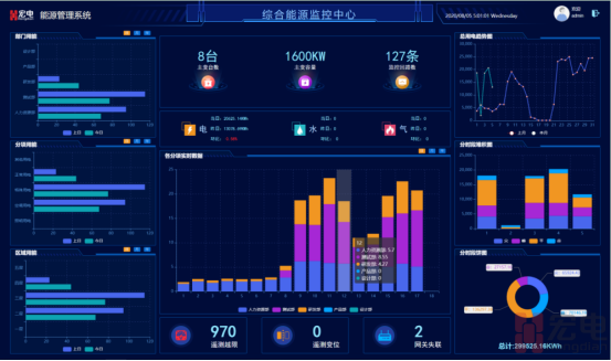 針對(duì)上述情況,宏電通過對(duì)重點(diǎn)能耗企業(yè)進(jìn)行深入的需求調(diào)研,結(jié)合多年深耕IOT行業(yè)的項(xiàng)目積累,融合物聯(lián)網(wǎng)技術(shù)、大數(shù)據(jù)、云計(jì)算等技術(shù)對(duì)企業(yè)所有能耗按不同層次、不同維度進(jìn)行統(tǒng)計(jì)分析,通過可視化圖表向管理人員或決策層直觀展示各用能單位的能耗情況,通過精細(xì)化的管理分析能耗高點(diǎn)、能耗極值以及不合理的用能習(xí)慣,為企業(yè)進(jìn)一步節(jié)能降耗提供科學(xué)準(zhǔn)確的數(shù)據(jù)依據(jù)。