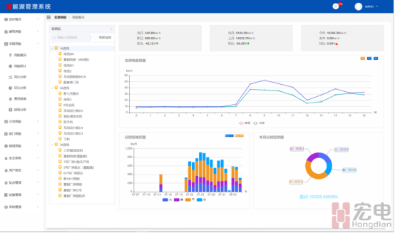 宏電不斷豐富各種可視化數(shù)據(jù)模型,幫助用戶自由配置各種監(jiān)控大屏,能源看板,并輸出直觀的能耗數(shù)據(jù)展示。