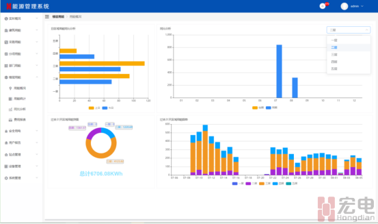 系統(tǒng)可根據(jù)用戶需求,展示出各建筑、支路、樓層、部門等多個(gè)不同維度的能耗數(shù)據(jù)包含用能概況、用能統(tǒng)計(jì)、用能分析、損耗分析以及費(fèi)用報(bào)表等,幫助企業(yè)了解每個(gè)環(huán)節(jié)能耗情況和能源損耗分析。