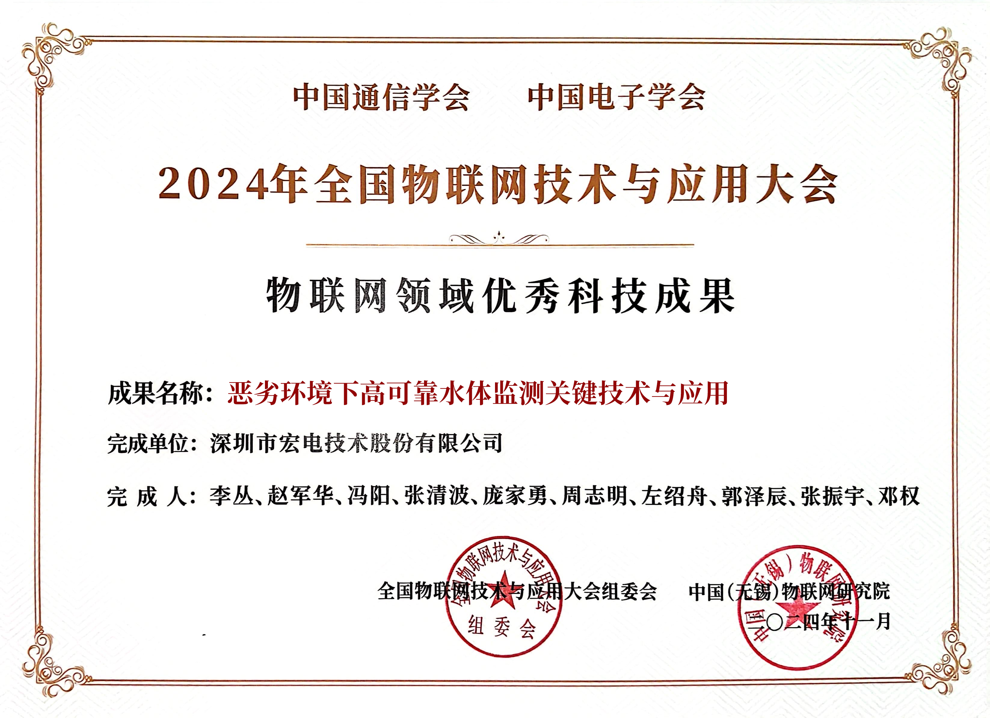 近日,宏電股份董事長(zhǎng)左紹舟受邀出席2024年全國(guó)物聯(lián)網(wǎng)技術(shù)與應(yīng)用大會(huì)并發(fā)表專題報(bào)告。大會(huì)聚焦物聯(lián)網(wǎng)領(lǐng)域新質(zhì)生產(chǎn)力的集聚和發(fā)展,匯聚眾多院士與行業(yè)專家,共同探討物聯(lián)網(wǎng)技術(shù)與應(yīng)用的創(chuàng)新成果。宏電股份申報(bào)項(xiàng)目“惡劣環(huán)境下高可靠水體監(jiān)測(cè)關(guān)鍵技術(shù)與應(yīng)用”榮獲“2024年度物聯(lián)網(wǎng)領(lǐng)域優(yōu)秀科技成果”獎(jiǎng)項(xiàng)。