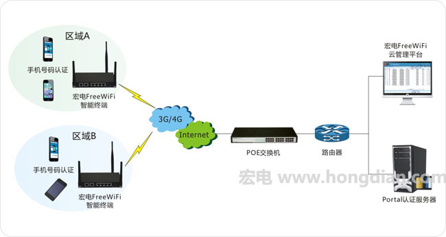 宏電公共區(qū)域WIFI熱點(diǎn)解決方案,主要是由宏電H9303智能無(wú)線WIFI路由器以及宏電FREEWIFI云管理平臺(tái)組成,本方案不拘泥與傳統(tǒng)的AP+AC的形式,終端H9303可以通過(guò)2/3/4G無(wú)線網(wǎng)絡(luò)到FREEWIFI云管理平臺(tái)進(jìn)行注冊(cè)登錄,平臺(tái)可以觀測(cè)設(shè)備所有的運(yùn)行信息,同時(shí)也可以配置設(shè)備和遠(yuǎn)程更換portal,終端H9303可以對(duì)接入用戶進(jìn)行黑名單設(shè)置和過(guò)濾。