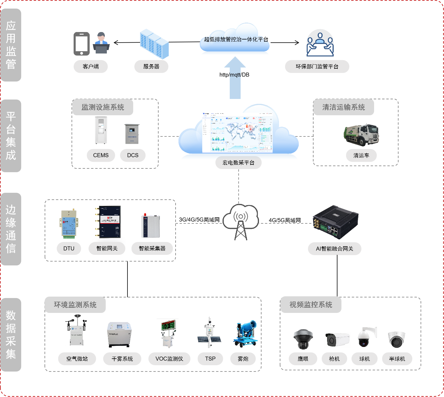 因物料儲存、輸送及生產(chǎn)過程的無組織排放、有組織治理及大氣污染物深度治理,涉及多系統(tǒng)、多設備,因此需要數(shù)據(jù)采集平臺去對接碎片化的子系統(tǒng)及設備,實現(xiàn)數(shù)據(jù)互聯(lián)、統(tǒng)一采集處理。