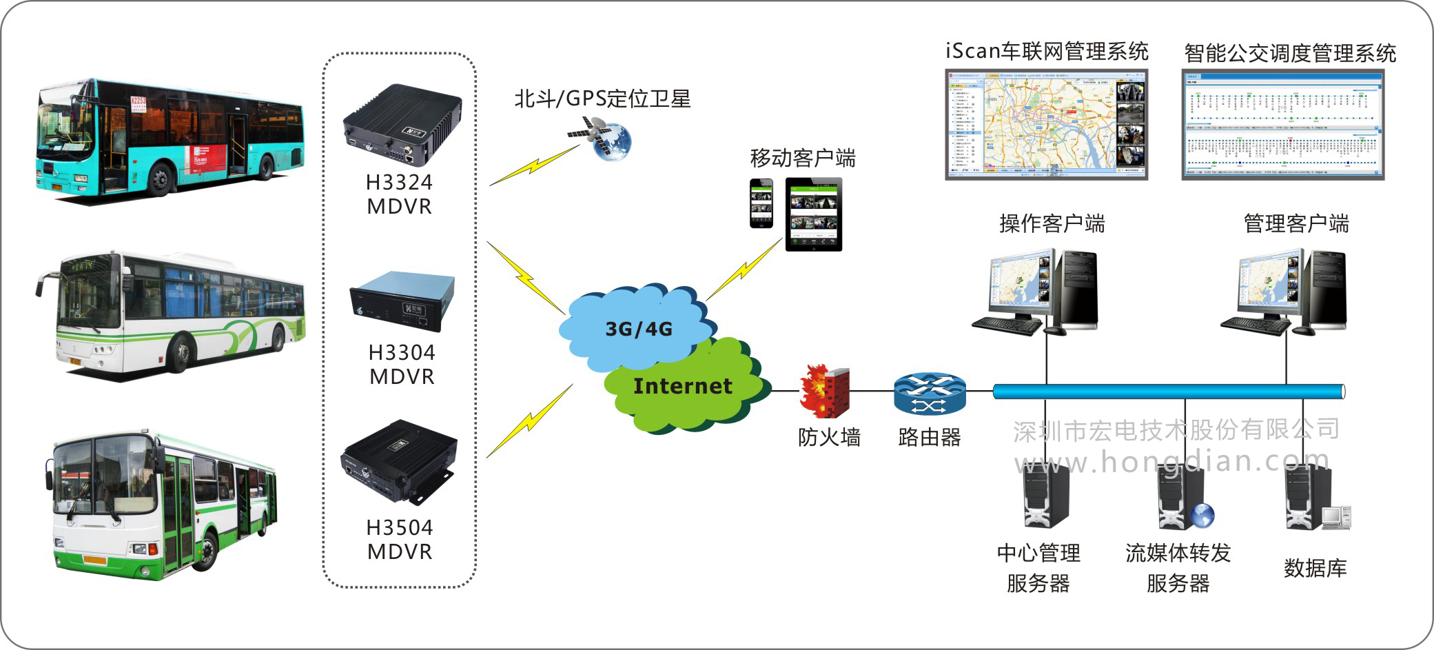宏電公交車載視頻監(jiān)控調度系統拓撲圖