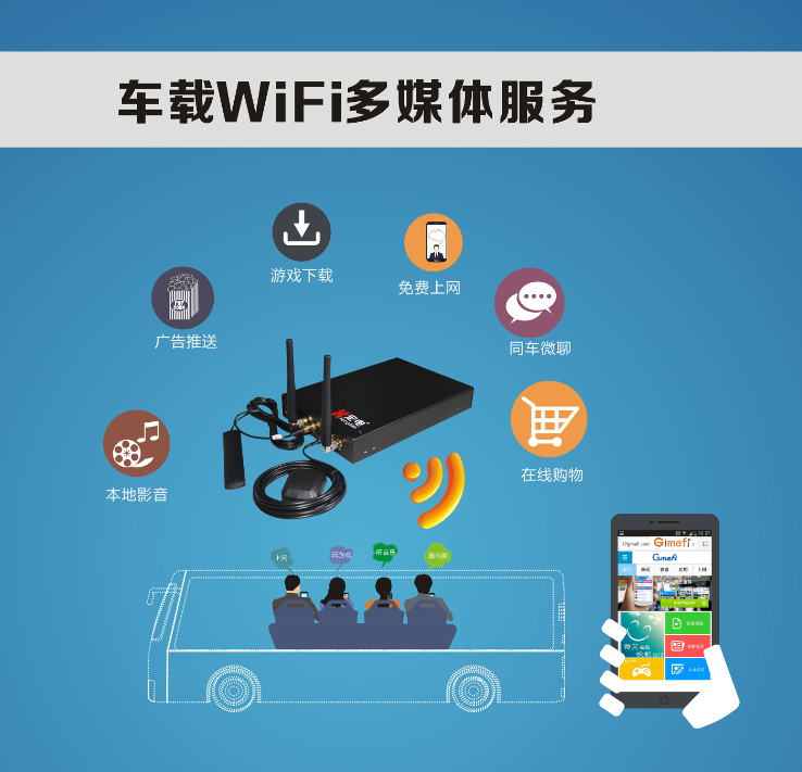 車載WiFi是宏電公司結(jié)合4G移動(dòng)通信與市場(chǎng)需求推出的車載多媒體終端,它可以讓乘客在乘車時(shí)享受免費(fèi)WiFi上網(wǎng)服務(wù)以及本地存儲(chǔ)的豐富的視頻、音樂(lè)、游戲等多媒體資訊節(jié)目。同時(shí)它還可以與云廣告平臺(tái)結(jié)合,實(shí)現(xiàn)基于LBS的精準(zhǔn)廣告推送、用戶行為統(tǒng)計(jì)分析、廣告效果分析等功能。目前,宏電已經(jīng)先后在國(guó)內(nèi)60多個(gè)城市成功實(shí)施公交WiFi項(xiàng)目,覆蓋幾十萬(wàn)輛公交車。