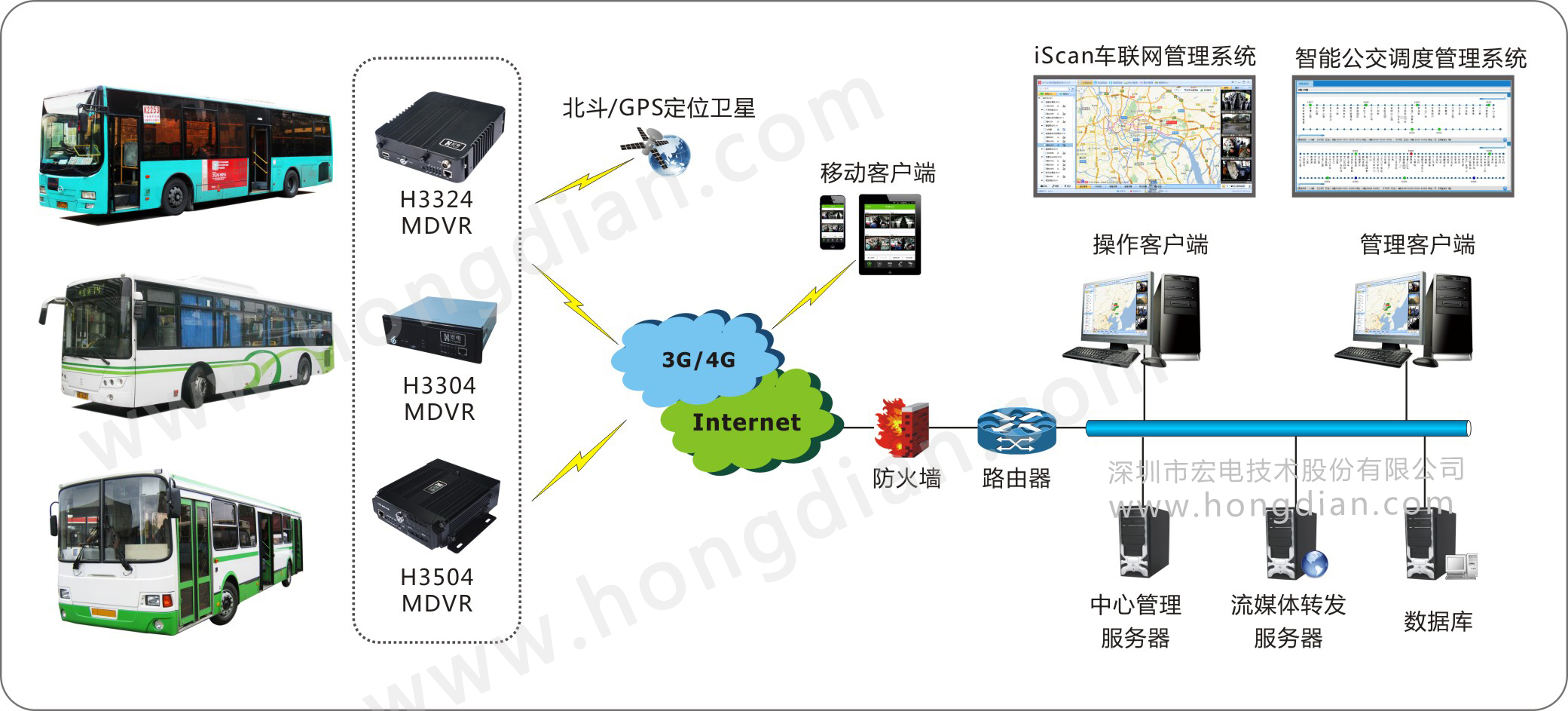 在互聯(lián)網(wǎng)+思想的指導下,深圳宏電推出城市公交車輛無線監(jiān)控調(diào)系統(tǒng)。該系統(tǒng)能夠?qū)卉囕v進行實時視頻監(jiān)控,實現(xiàn)公交調(diào)度、數(shù)據(jù)采集,為交通事故和違法事件取證提供有效依據(jù),規(guī)范公交運輸管理。