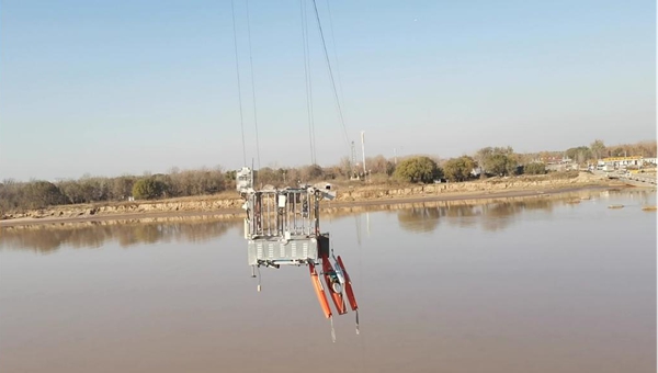 濼口水文站,無人測驗平臺前往測流。“行走黃河”采訪組記者 李棟 攝