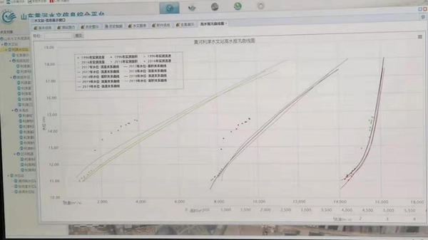 利津水文站運用歷史數(shù)據(jù)形成的高水報汛曲線圖。“行走黃河”采訪組記者 李棟 攝