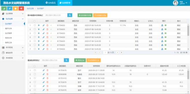 1、站點(diǎn)維護(hù):提供降水量滴水試驗(yàn)登記表及巡檢記錄的增刪改查