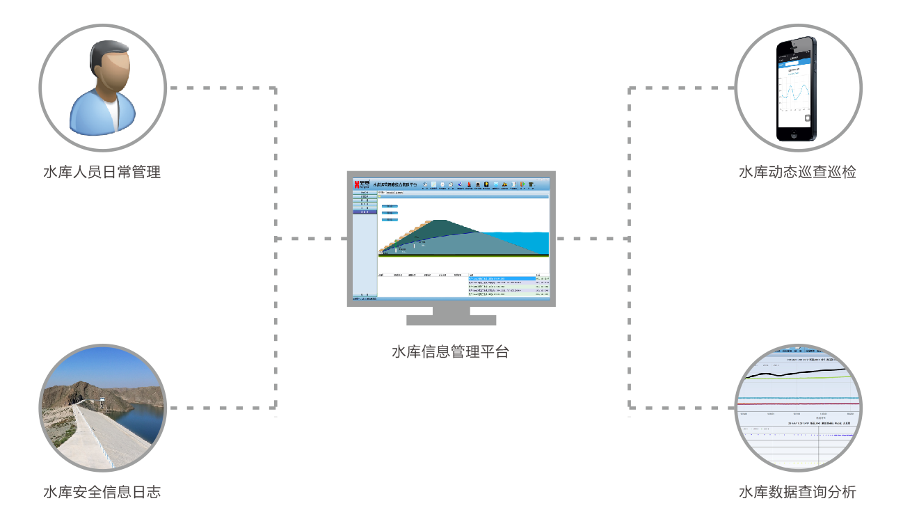 水庫信息管理子系統(tǒng)是水庫綜合管理信息系統(tǒng)的組成部分,是根據(jù)水庫管理的實(shí)際工作需要為目標(biāo),按照現(xiàn)有的有關(guān)國家標(biāo)準(zhǔn)、行業(yè)標(biāo)準(zhǔn)和技術(shù)規(guī)范為設(shè)計(jì)依據(jù)的信息管理平臺(tái),功能設(shè)計(jì)充分考慮了水庫工程管理部門的工作特點(diǎn)和關(guān)鍵業(yè)務(wù),該系統(tǒng)能及時(shí)準(zhǔn)確地反應(yīng)工程管理的數(shù)據(jù),為防汛和管理部門的決策提供依據(jù)。