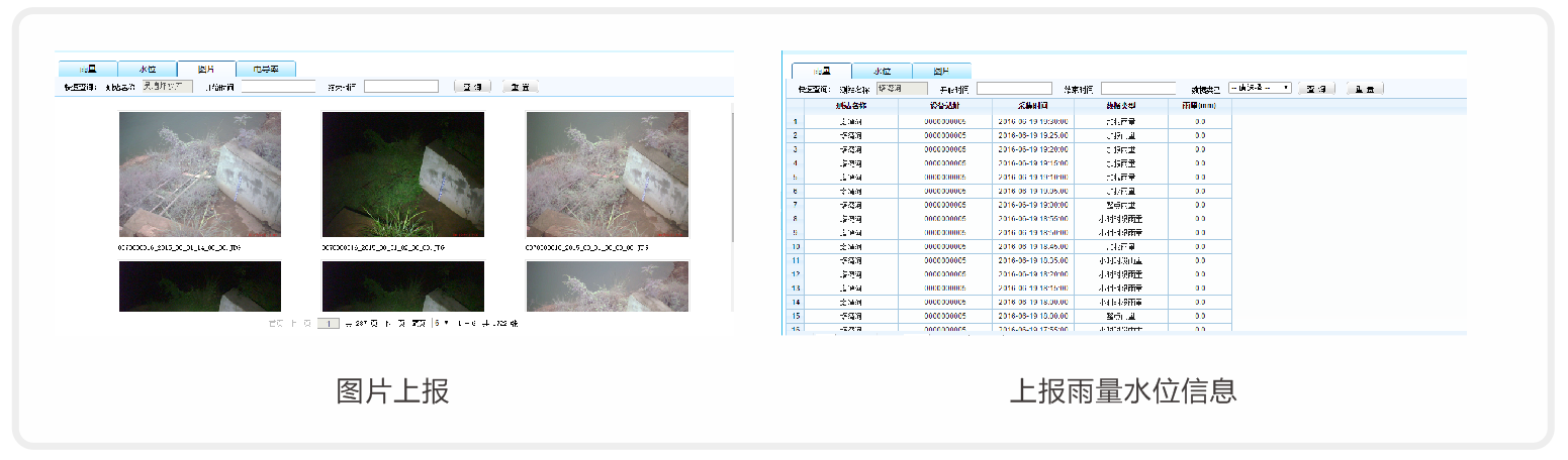 RTU可以定時(shí)對(duì)監(jiān)視的場景進(jìn)行拍照,然后將照片通過無線傳輸功能上報(bào)給平臺(tái)軟件,使平臺(tái)軟件可以將圖片、雨水情監(jiān)測量一起關(guān)聯(lián)查看,及時(shí)了解現(xiàn)場真實(shí)情況。