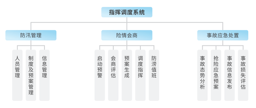 指揮調(diào)度系統(tǒng)軟件是基于自動(dòng)測(cè)控系統(tǒng)平臺(tái)之上建立的信息整合系統(tǒng),可實(shí)現(xiàn)排水設(shè)施動(dòng)態(tài)信息的中央監(jiān)控、聯(lián)合調(diào)度等,是具備高度智能化指揮調(diào)度功能的決策支持平臺(tái)。整個(gè)軟件系統(tǒng)的設(shè)計(jì)基于一張圖理念,在電子地圖上標(biāo)注地下管線的埋深、走向、材質(zhì)、管徑,提供豐富的管線瀏覽與分析工具,輔助用戶進(jìn)行城市排水管網(wǎng)數(shù)據(jù)資料管理與查詢應(yīng)用、排水設(shè)施巡檢養(yǎng)護(hù)管理、閘門泵站實(shí)時(shí)監(jiān)控及防汛應(yīng)急指揮。指揮調(diào)度子系統(tǒng)主要包括防汛管理、險(xiǎn)情會(huì)商、事故應(yīng)急處置、移動(dòng)端APP四大部分。