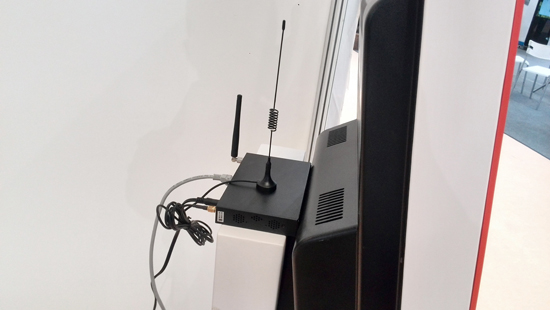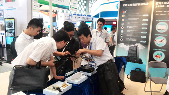 宏電展位上客戶競(jìng)相體驗(yàn)4G WiFi廣告路由器