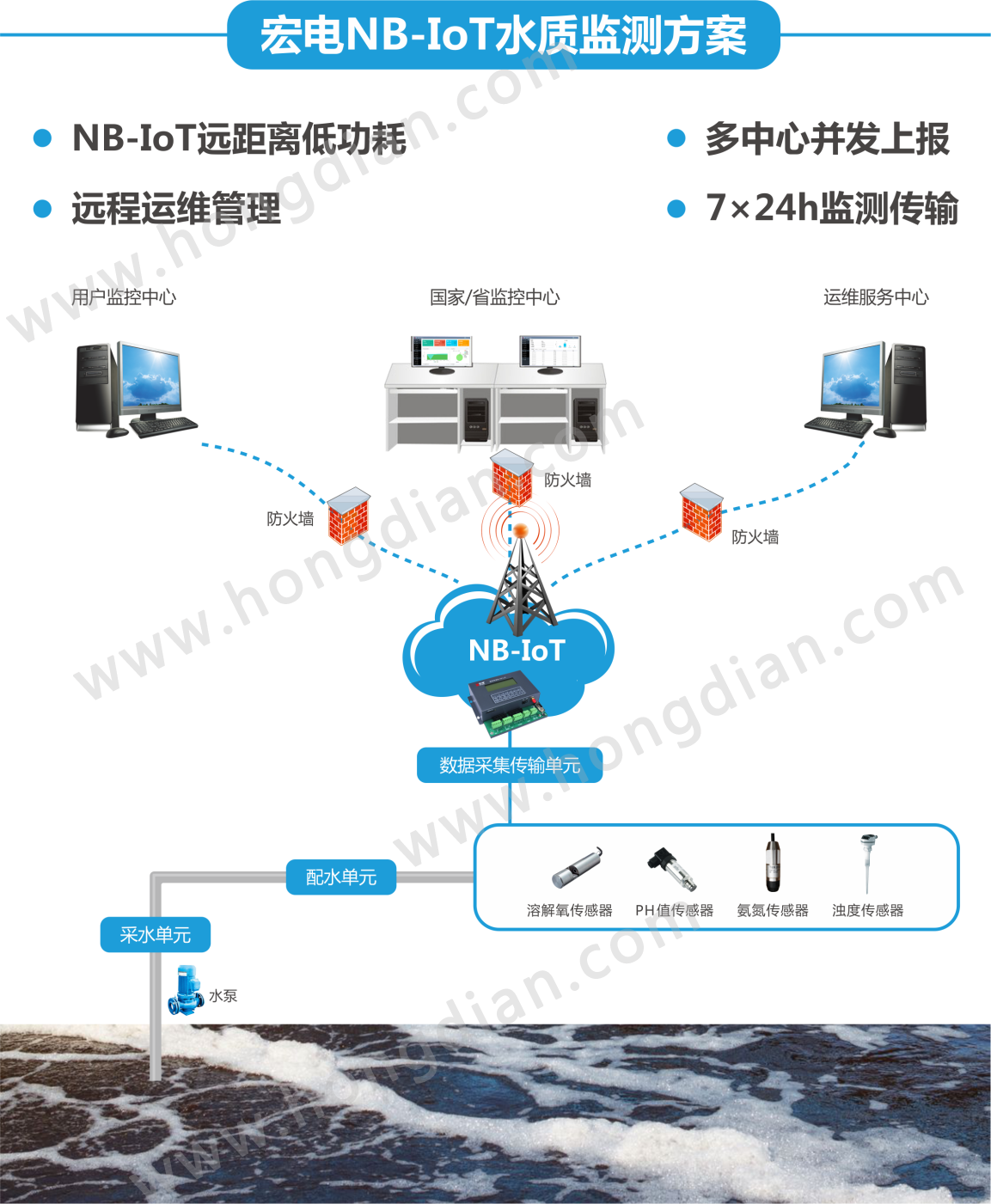 宏電公司很早就開始進(jìn)行LPWAN相關(guān)技術(shù)與智慧水利水務(wù)業(yè)務(wù)的結(jié)合研究,將NB-IoT技術(shù)應(yīng)用在水質(zhì)監(jiān)測中,推出NB-IoT水質(zhì)監(jiān)測方案,基于NB-IoT網(wǎng)絡(luò),應(yīng)用自動控制、精密分析等技術(shù),通過豐富的智能傳感器,實現(xiàn)對各種水源的水質(zhì)信息以及水位、流量、雨量等信息進(jìn)行感知和分析處理,是一套含水樣采集、水樣預(yù)處理、水質(zhì)自動分析、數(shù)據(jù)采集傳輸、水質(zhì)留樣、遠(yuǎn)程監(jiān)控于一體的在線全自動智能環(huán)境監(jiān)控系統(tǒng)。